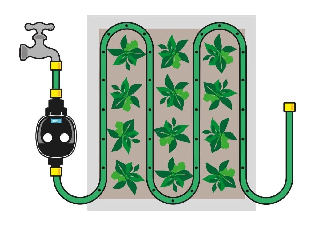 K časovači můžete připojit jakýkoliv typ kapkové závlahy, kterou lze použít ve skleníku, na záhonech nebo jednotlivých pěstebních nádobách.