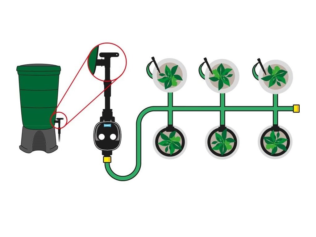 nástavce pro připojení na vodovodní kohoutek, ventil zahradní nádrže nebo na zaskakovací spojku hadice 13 mm. Výstup je rovněž s nástavcem na hadici 13 mm. Součástí balení jsou hadicové přípojky s vnitřním/vnějším závitem 3/4".
