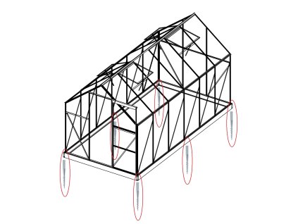 Univerzální kotvící systém vhodný pro modely skleníků 6x4, 6x6, 2500, 3800.